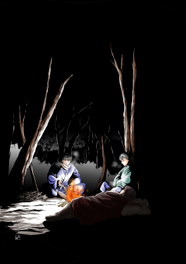 | 燃散雪 完結 P19 2018年頒布の鎌倉幕府滅亡アンソロ寄稿漫画 北条仲時の子・友時のお話です |